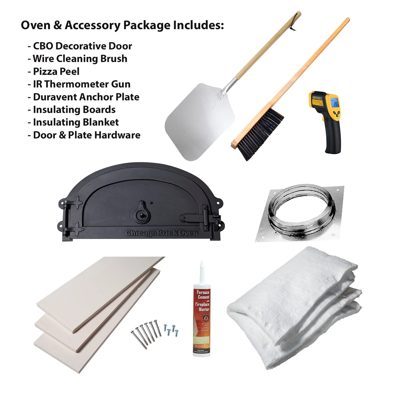- 6 Piece Oven Included (dome, 3-piece hearth, arch, door)