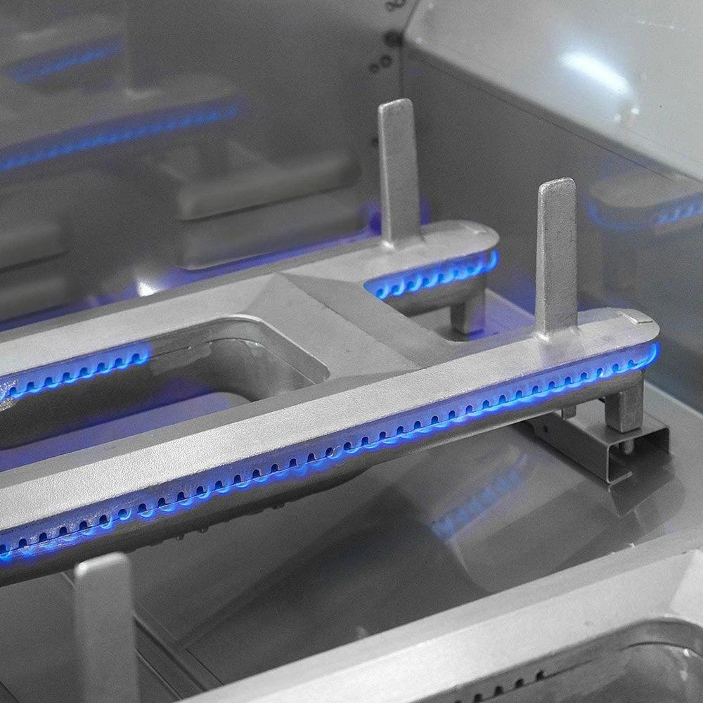 - Heavy gauge cast stainless steel E burners provide maximum heating capability and incredibly even heat